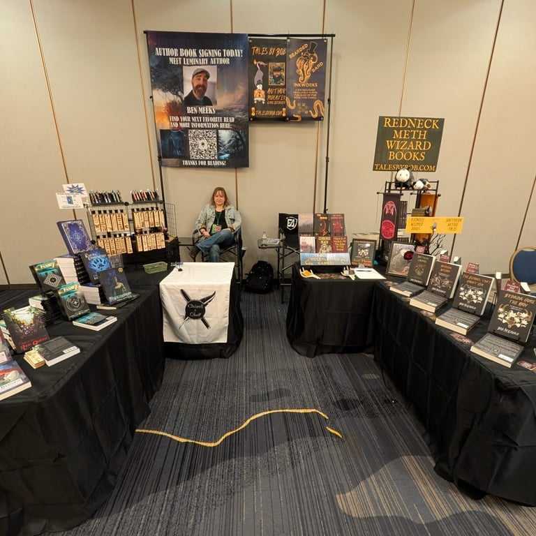 Most excitingly I sold two of my 7 book bundles! I haven't sold one of those in a bit, and to sell two in one event was nice! I only bring two, so I actually had to tear down some of my display to sell the second one haha. What I changed was doing away with my hardback bundle. It just didn't sell as well. Going forward I am only going to sell those bundles through my site. In person, it will be seven book paperback bundles for 100 bucks, and I throw in a few freebies.